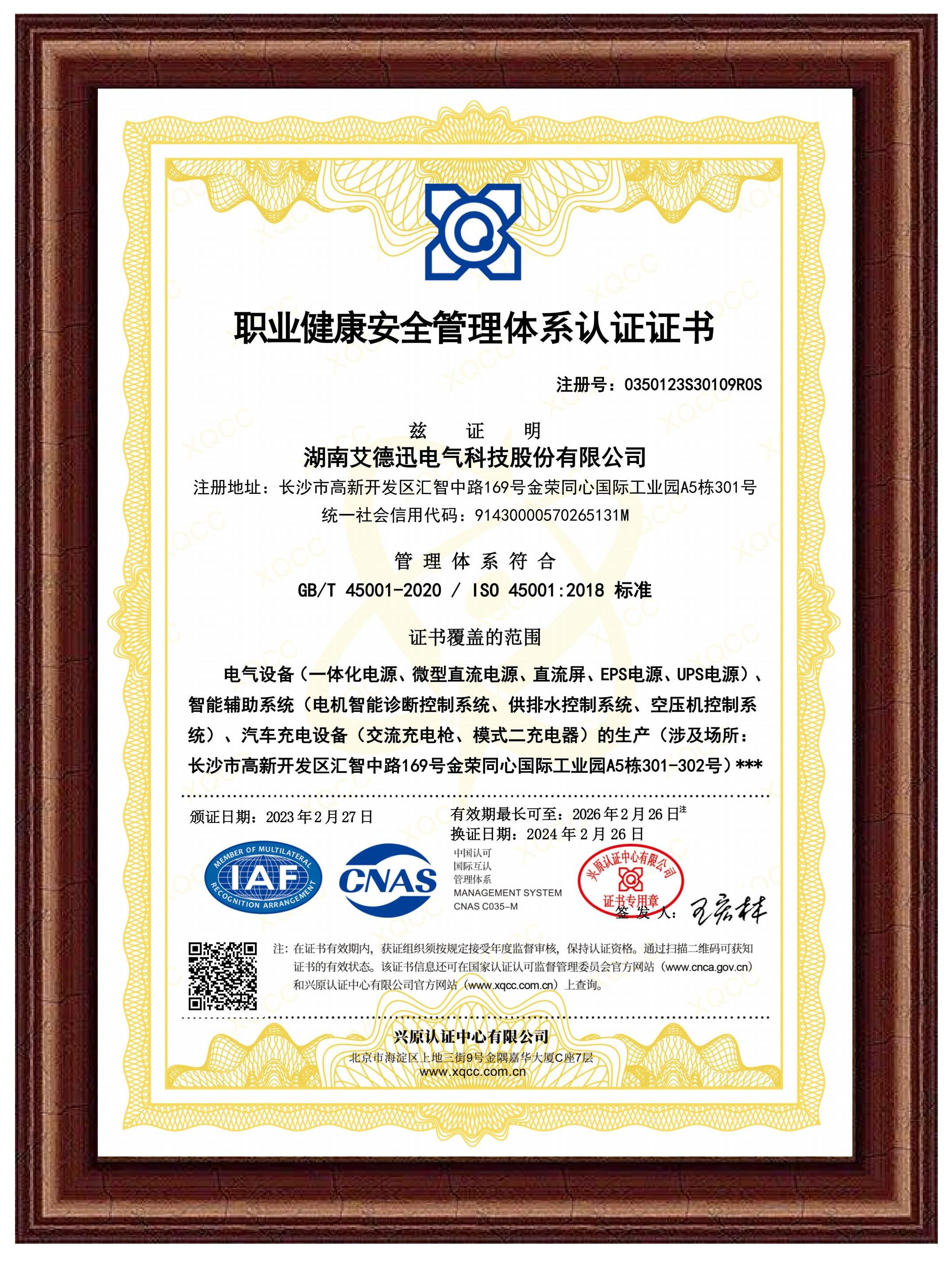職業(yè)健康安全管理體系認(rèn)證證書(shū)